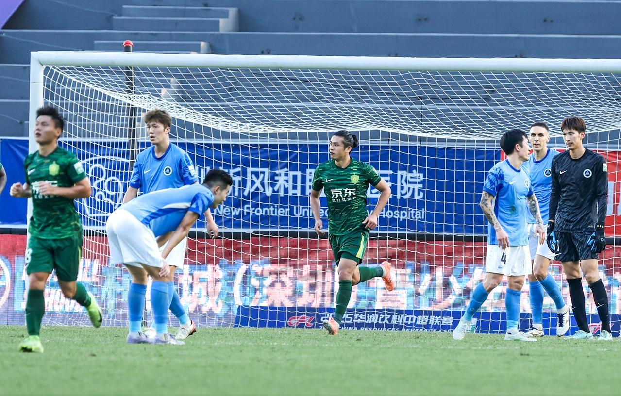 易边再战,北京国安迅速调整战术,加强了中场控制和前场渗透,试图扭转不利局面。第67分钟,北京国安终于扳回一球。中场核心张稀哲策动攻势,将球分给右路套上的何宇鹏,后者果断传出“倒三角”球,禁区内的国足中锋张玉宁门前撞射破门,北京国安将比分追至1-2。这粒进球让国安看到了扳平的希望。进球后,国安展开了疯狂的反扑,但新鹏城全队退守半场,展现了极强的防守纪律性和保级球队的顽强精神。国安虽然围攻新鹏城禁区,但始终未能创造出真正致命的机会。最终,新鹏城顽强地将2-1的比分保持到了终场。