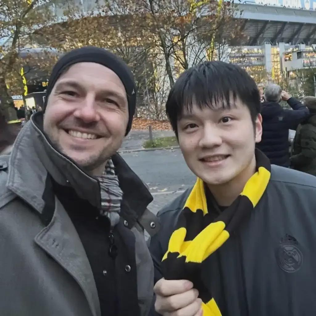 早在2023年11月,多特蒙德与拜仁的德甲双雄会时,波尔就曾驱车6小时接上樊振东,带着母亲亲手烤的苹果派一起前往多特蒙德的主场看球。赛后,波尔在社媒上写道:“与世界最好的樊振东临时起意去看球!”