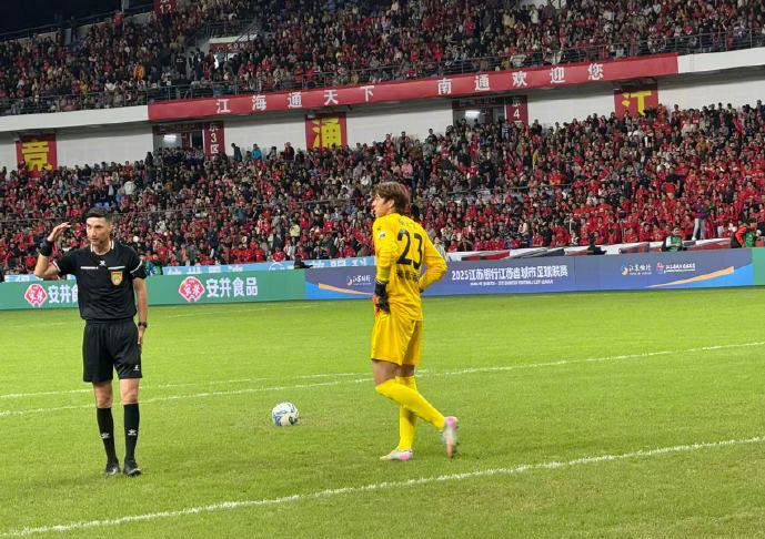 在北京时间10月19日晚结束的苏超第二场半决赛中,南通队与无锡队展开了一场惊心动魄的对决。经过90分钟常规时间的激战,双方均未能打破僵局,比赛不得不通过点球大战来决定胜负。而在这场点球大战中,南通队一位年仅20岁的门将蔡天龙横空出世,他压哨登场,连扑两点,成为球队晋级决赛的最大功臣。