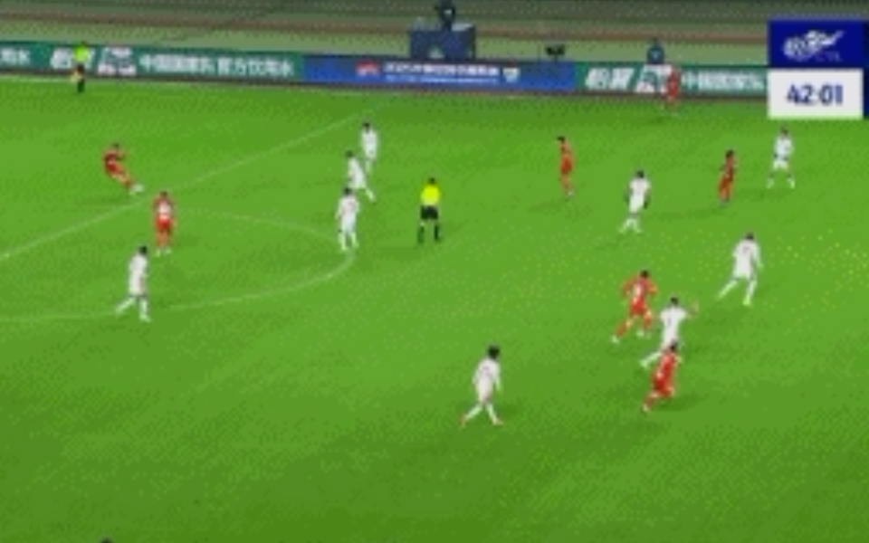 比赛的第42分钟,钟义浩右路斜传,亚泰后卫抢在阿奇姆彭前解围失误,幸好门将反应神速将球挡出底线。