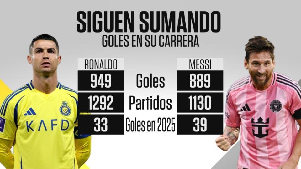 如果只看2025年的表现,梅西在各项赛事中出场47次,贡献了39球和20次助攻,参与制造了59球。而C罗在同样的时间段内出场37次,贡献了33球和3次助攻,参与制造了36球。从这一年的数据来看,梅西的表现也更为抢眼。