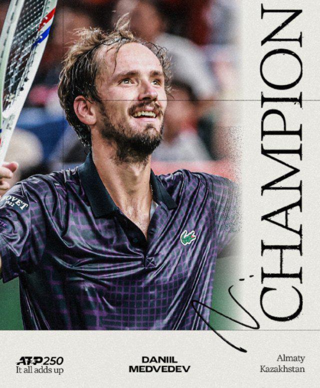北京时间10月19日,ATP250阿拉木图男单决赛迎来了一场焦点对决。在这场备受瞩目的比赛中,2号种子梅德维德夫以出色的发挥,最终以7比5、4比6、6比3的比分击败了8号种子穆泰,成功斩获了自己职业生涯中的第21个冠军。