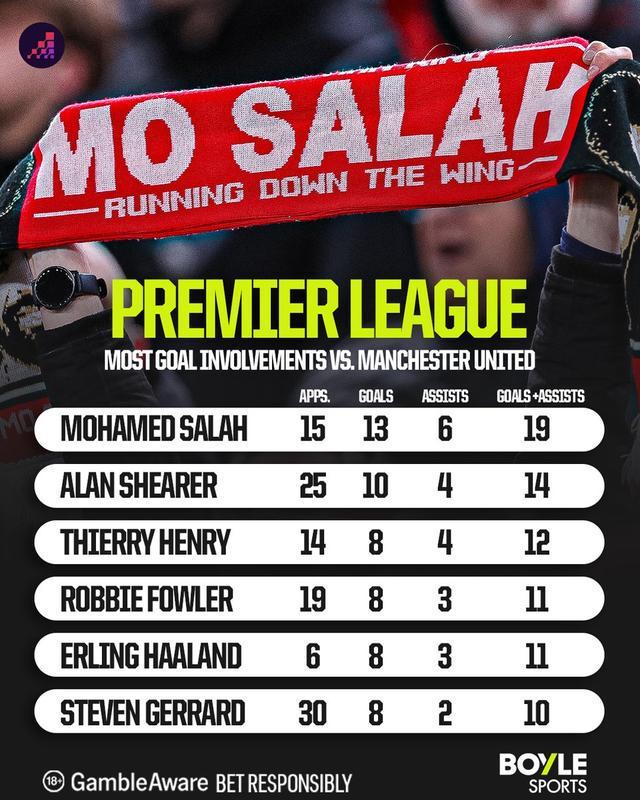 10月19日,英超联赛将迎来一场备受瞩目的焦点对决——利物浦坐镇主场迎战曼联,这场“双红会”大战历来是英超赛场上最具话题性的较量之一。而根据最新数据统计,利物浦的进攻核心萨拉赫,已然成为英超历史上对曼联进球及助攻最多的球员,这一成就无疑为即将到来的比赛增添了更多看点。