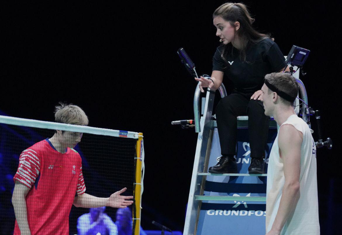 安塞龙抓住机会以21-17扳回一局。决胜局前,安塞龙到场边更换新球,这一举动再次引发双方争执。丹麦主场观众集体向石宇奇发出嘘声,裁判随即对两名选手均提出警告。面对压力,石宇奇展现出强大的心理素质,以21-17锁定胜局,总比分2-1淘汰安塞龙。