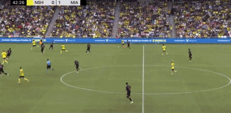 第35分钟,梅西展现个人能力,胸停转身突破后,在弧顶处起脚劲射破门,为迈阿密国际先拔头筹。