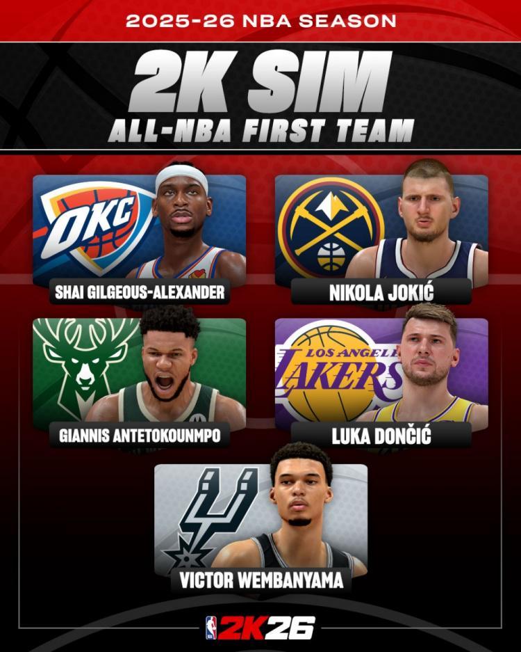 随着25-26赛季季前赛的圆满落幕,NBA常规赛的战火即将重燃,标志着新赛季的正式启航。在这个充满期待的时刻,知名体育游戏2K公布了其对新赛季最佳阵容的预测,这一预测迅速在球迷间引发了热烈的讨论与关注。