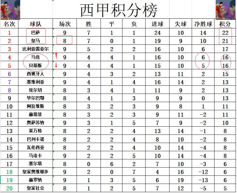 凭借绝杀胜利,巴萨以1分优势反超皇马重返榜首,马竞则凭借近8轮4胜4平的不败战绩,以净胜球优势超越贝蒂斯升至第4,与榜首巴萨相差6分。