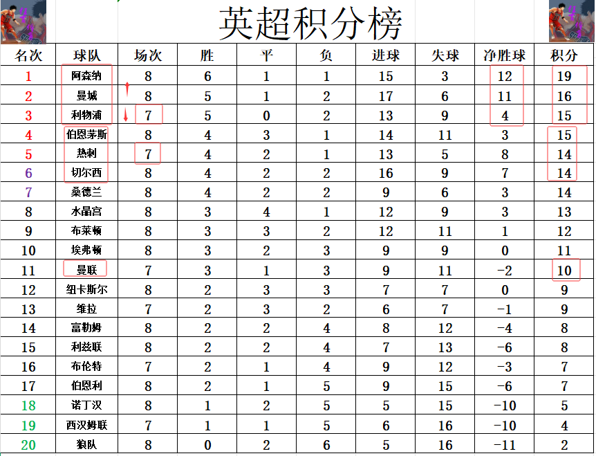 积分榜方面,阿森纳近5轮4胜1平积19分,在多赛一场的情况下领先利物浦4分稳居榜首。曼城凭借本场胜利取得3连胜,暂时反超利物浦1分升至第2,利物浦跌至第3。切尔西大胜后追平热刺升至第6,伯恩茅斯与利物浦同分排在第4。