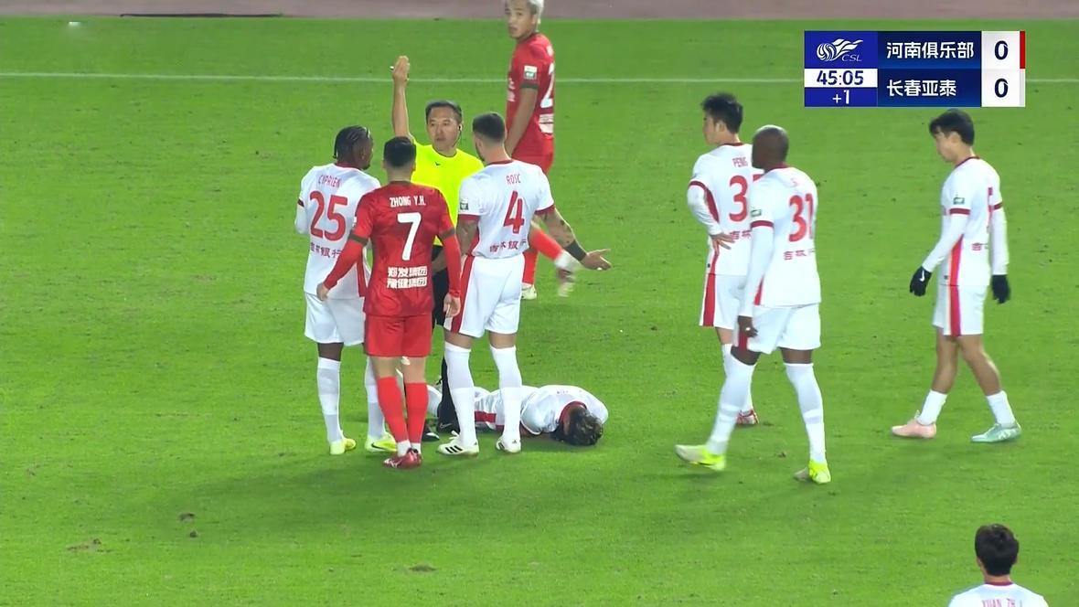 开场后,两队节奏并不快,主场作战的河南队稍稍占据进攻端的主动权。第14分钟,王上源角球罚到禁区,刘鑫瑜甩头攻门,可惜球擦门而过!随着比赛深入,长春亚泰的五后卫防守体系虽相对稳固,但断球后的反击质量并不高。