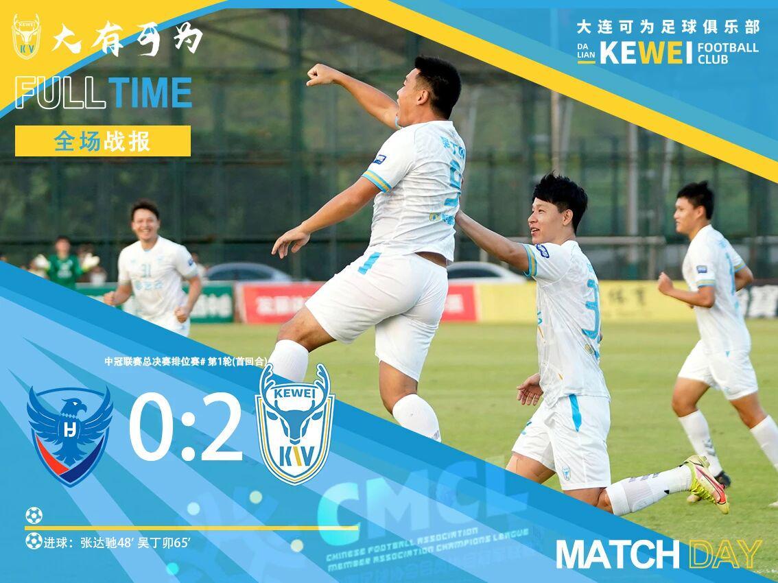 北京时间2025年10月18日,2025中国足球协会会员协会冠军联赛总决赛排位赛第一轮(首回合)焦点战在梅州五华横陂足球小镇9号场展开,大连可为客场挑战五华华京。上半场双方互交白卷,下半场风云突变——第48分钟,张自超精准传中,汤郡豪头球摆渡,队长张达驰冷静推射破门,大连可为1-0领先!第65分钟,替补登场的吴丁卯抓住对手防线漏洞,小禁区内补射得手,将比分扩大至2-0!最终,大连可为以2-0的比分完胜对手,在两回合淘汰赛中占据先机。