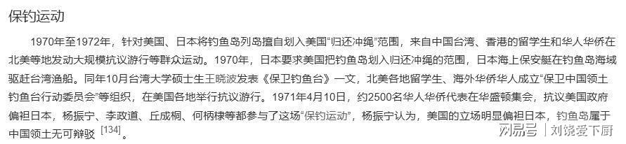 当初,钓鱼岛事件闹得沸沸扬扬,杨振宁作为留美学生参加了当地华人的抗议活动。