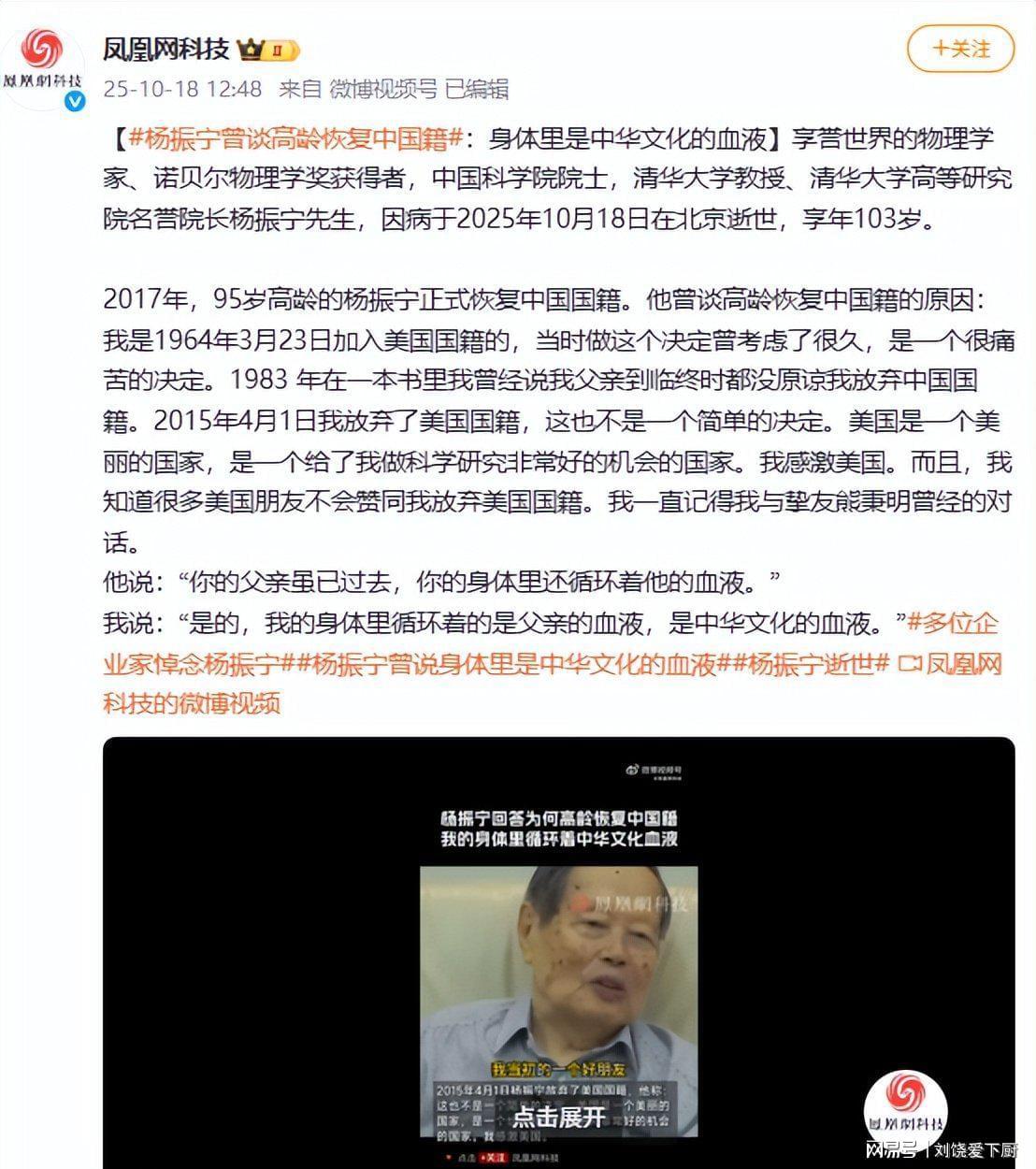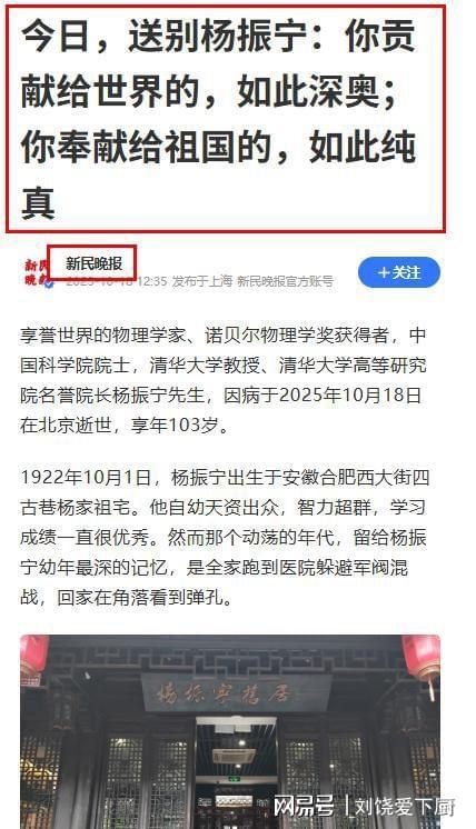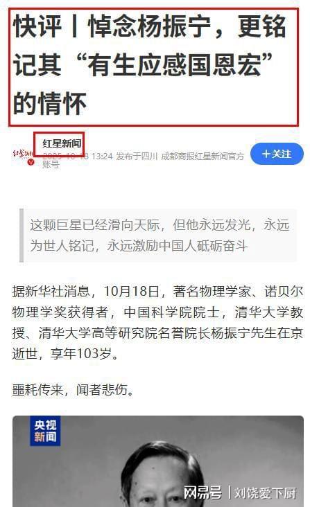 近日,有媒体报道称,杨振宁在过完103岁生日没多久就突然去世了。