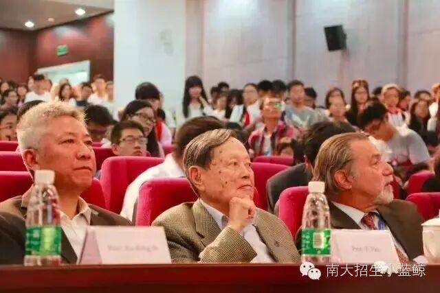 这是杨振宁首次来到南大仙林校区,他对这里的环境赞不绝口:“这个新校区我没来过,这次来了以后发现新楼都很讲究。年轻同学们应该感到幸运,因为你们比父辈、祖父辈接受更好教育、研究环境的机会要多得多。”