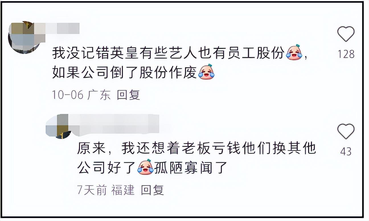 据传,英皇娱乐老板杨受成与员工关系融洽,甚至有传闻称公司资深艺人大多持有英皇股份。如今公司负债百亿,若倒闭,这些股份将全部作废,损失难以估量。因此,陈伟霆等艺人的经济利益与公司命运紧密相连。