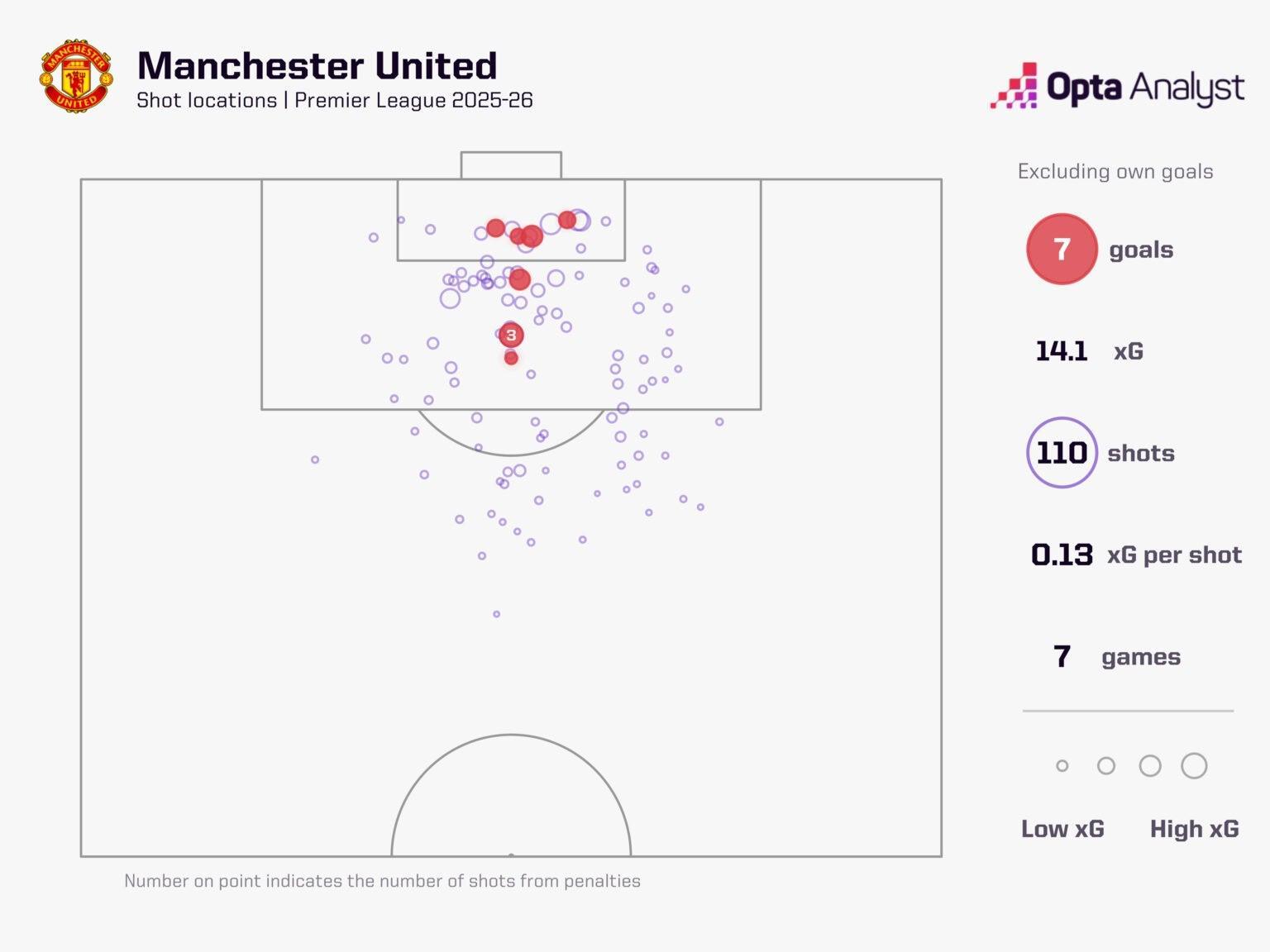 在防守端,曼联的数据则呈现出另一番景象。前7轮比赛中,只有阿森纳(56次)和纽卡斯尔联(62次)的被射门次数少于曼联(64次),这表明红魔在限制对手射门方面做得相对出色。但与此同时,曼联的预期失球数却高达10.1球,排名英超第四。对手平均每次射门就能创造0.16个预期进球,这一数据在英超所有球队中高居榜首,暴露出曼联防线在应对高质量射门时的脆弱性。