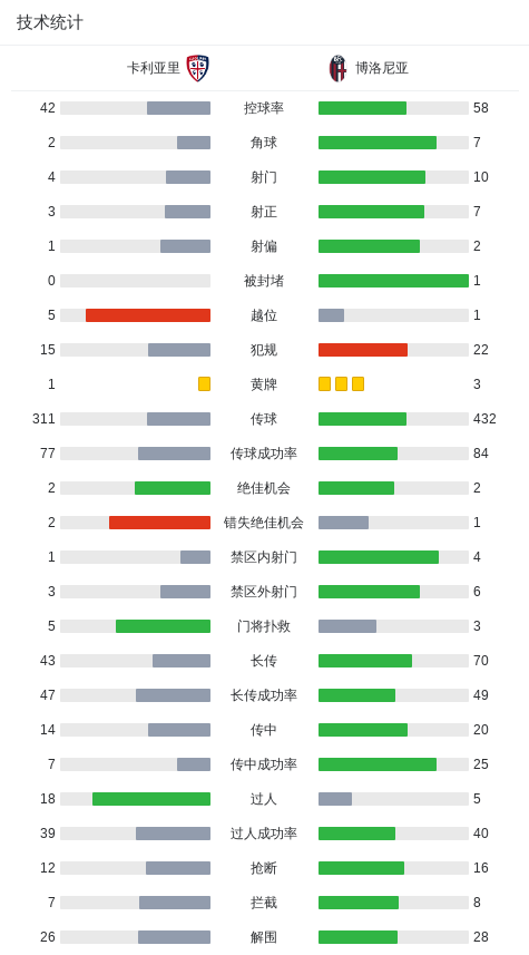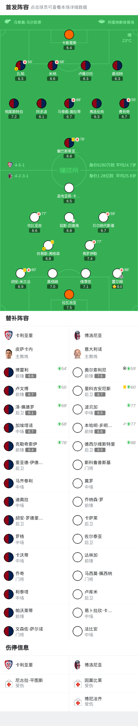 本场比赛,博洛尼亚在控球率、射门次数等关键数据上均占据优势,最终将优势转化为胜势。技术统计显示,博洛尼亚全场射门次数达到15次,其中7次射正,而卡利亚里仅有8次射门,且无一射正。
