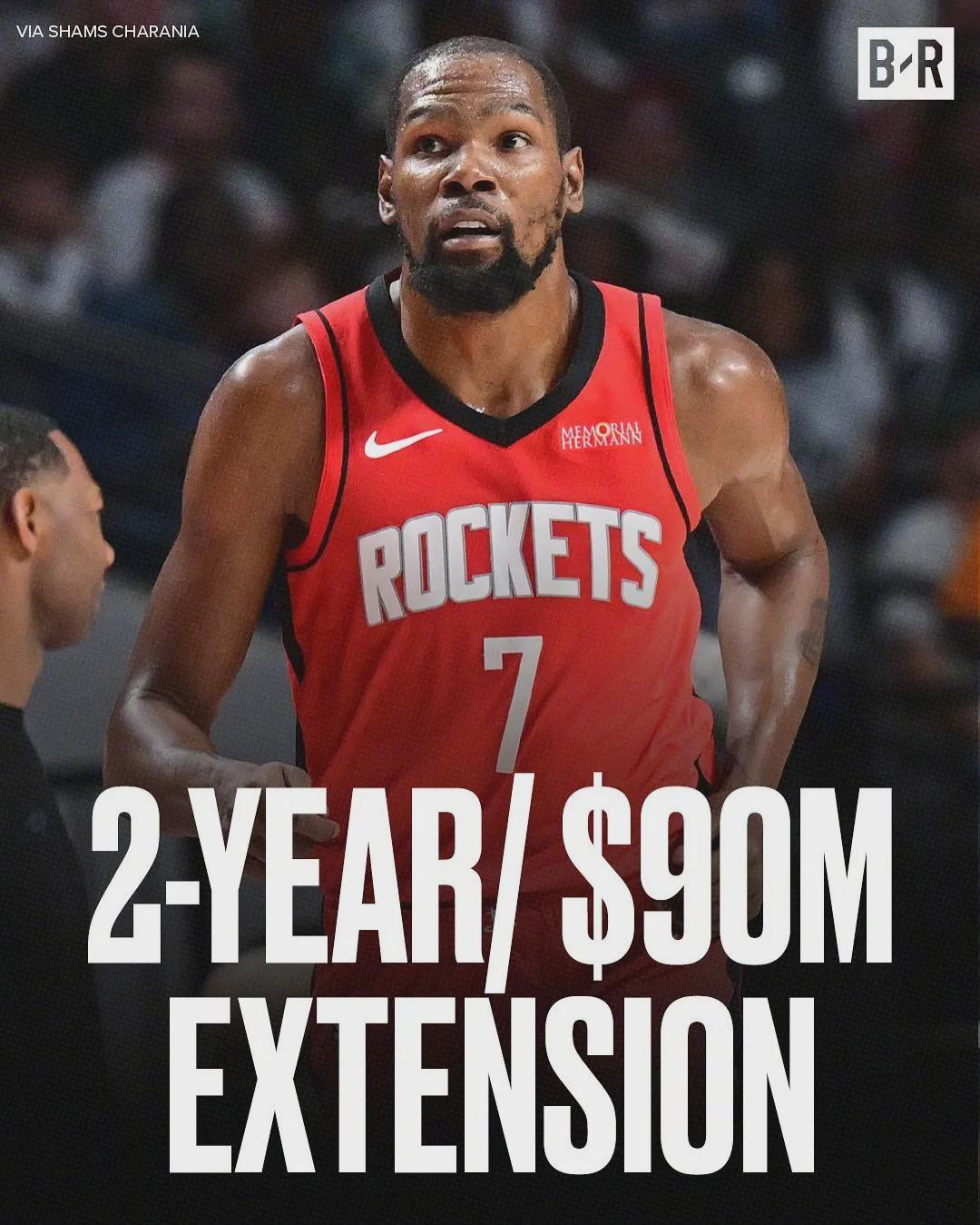 火箭队官方正式宣布,已与超级巨星凯文·杜兰特达成提前续约协议。据权威记者Shams Charania报道,杜兰特主动放弃两年1.2亿美元的顶薪合同,转而与火箭签下两年9000万美元的新约,直接降薪3000万美元。此举旨在为球队保留薪资空间灵活性,为双方长期合作奠定基础。