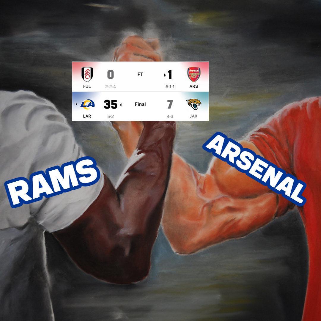 雷速体育10月20日讯,在刚刚结束的NFL伦敦碗焦点战中,洛杉矶公羊队以35-7的压倒性优势战胜杰克逊维尔美洲虎队,这场胜利不仅让公羊队在海外赛场大放异彩,更在赛后引发了与英超劲旅阿森纳的趣味互动。