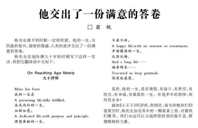 或许,从翁帆28岁决定嫁给82岁的杨振宁那一刻起,就注定了她的不平凡人生。杨振宁以103岁高龄离世,无憾于世。翁帆在《光明日报》发文缅怀丈夫时,深情地说:“他交出了一份满意的答卷。”