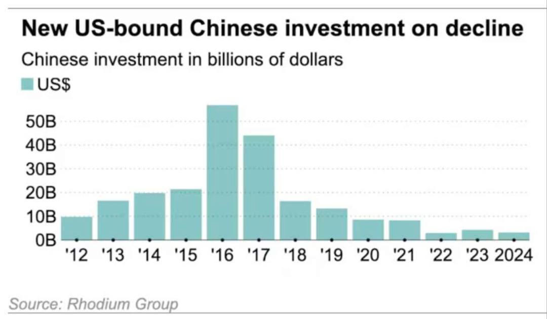 1.中国对美新增投资在2016年达到超过500亿美元的峰值后便持续萎缩,2024年已降至32亿美元的十年低点。在此背景下,中国自4月起已经暂停批准所有寻求在美国设立或扩张业务的企业对外投资项目。但是,鉴于近年实际投资流量已处于极低水平,这项新限制措施对两国经济的实质影响有限,其主要作用更多被视为在贸易谈判中释放的政治信号。