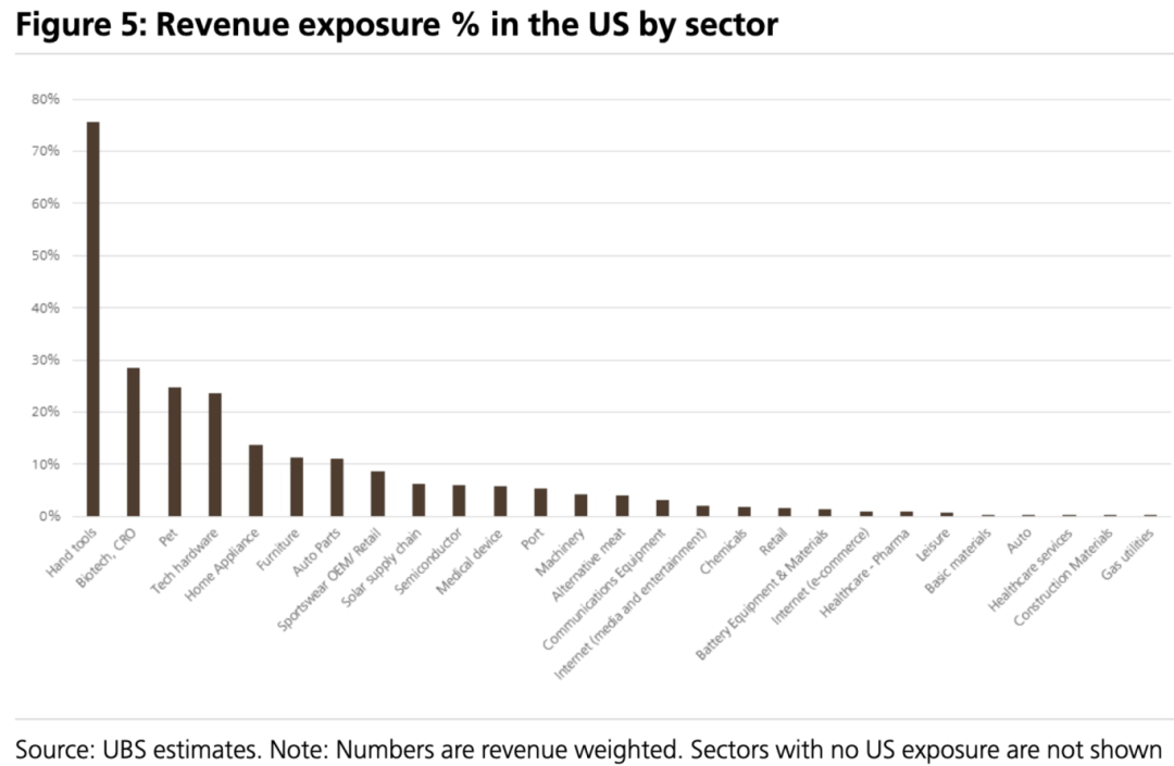 3.中美关系面临的紧张局面,使MSCI中国短期承压,尤其是那些对美收入敞口高的行业面临基本面盈利风险。在所有行业中,手工具行业的美国收入风险敞口最高,达~75%,其次是生物技术/CRO(~28%)、科技硬件(~24%)和宠物用品(~21%)。这些高风险板块在4月份大跌后反弹强劲,当前可能受到中美关系变化影响最大。