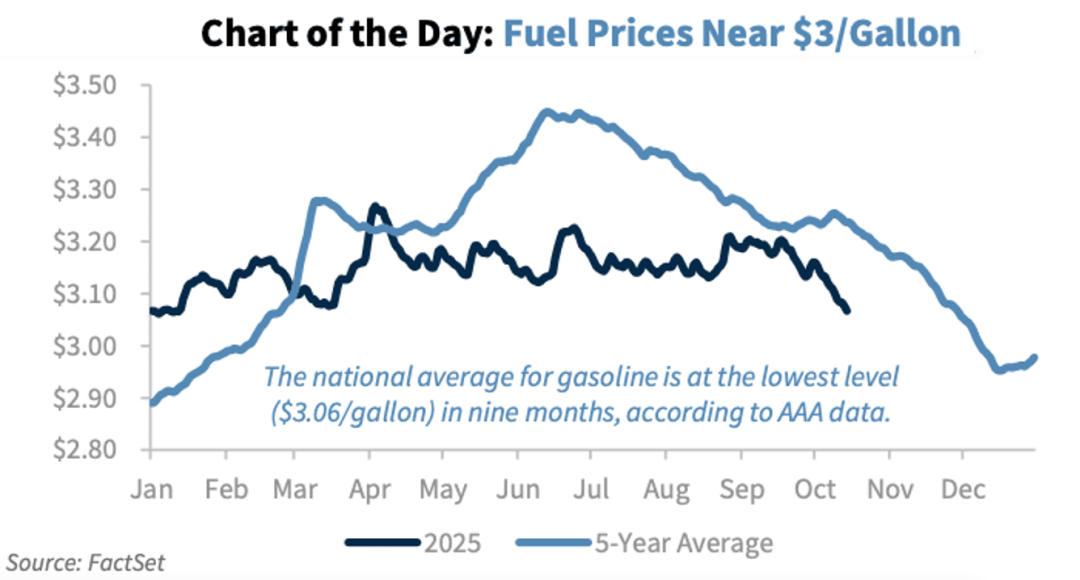 9.根据AAA数据,美国全国平均汽油价格已降至3.06美元/加仑,创下九个月新低,并正逼近自2021年以来未曾跌破的3美元心理关口。