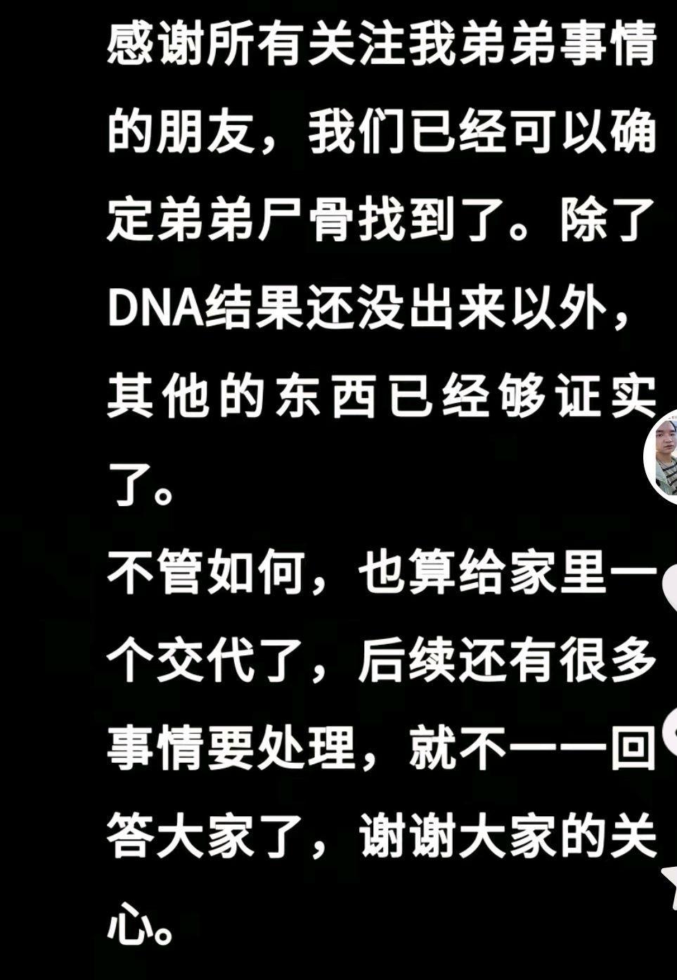 虽然警方比对的DNA结果还没有出来,但蔡磊的哥哥表示,根据衣物、鞋子等物品,基本可以确认就是他了。哥哥对所有关注此事的人表示了感谢。