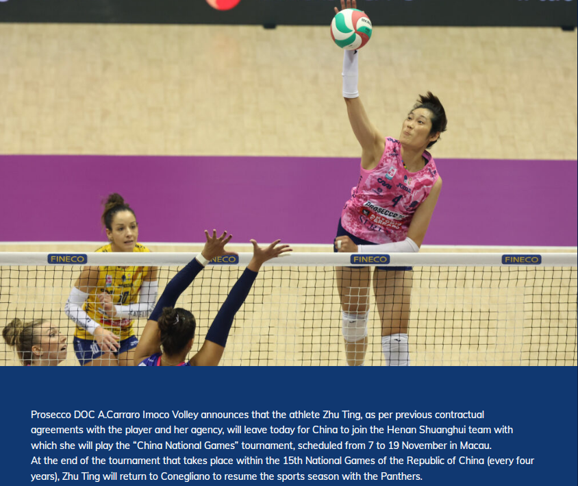 北京时间10月20日,意甲科内利亚诺女排俱乐部正式对外宣布,球队核心球员朱婷已于今日启程回国,将代表河南全运女排参加11月份举办的全运会赛事。根据安排,朱婷在完成全运会任务后,将于11月下旬重返科内利亚诺女排,继续参加本赛季剩余的比赛。