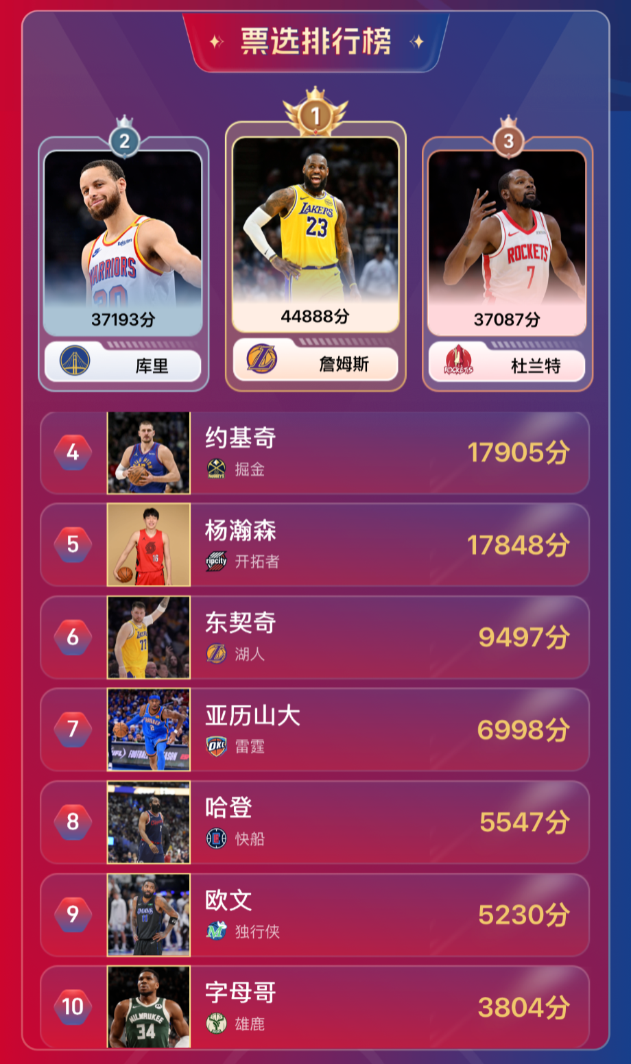 雷速体育10月20日讯 今日,雷速体育举办的NBA30大球星评选活动正式落下帷幕。在此,我们衷心感谢所有参与和支持本次活动的球迷朋友们,是你们的热情参与让这次评选活动更加精彩纷呈。