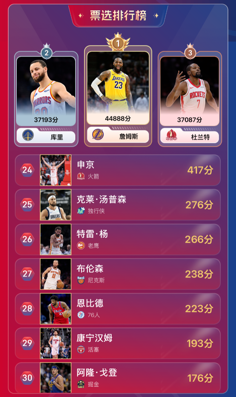 以下是本次NBA30大球星的具体排名情况,供球迷们参考和回顾: