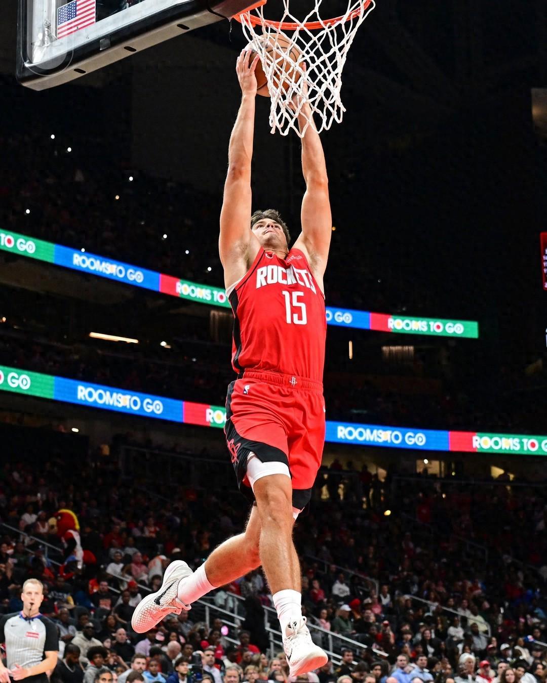 全场29分钟的出场时间里,谢泼德以22中12的效率轰下29分,同时贡献6篮板6助攻4抢断3盖帽的「五双」级表现。奥科吉则以28分3篮板3助攻2抢断3盖帽的全面数据与之呼应,替补席上克劳福德(20分)、杰夫·格林(16分)和霍勒迪(16分)的集体爆发,更凸显火箭阵容深度的可怕。反观老鹰阵营,状元里萨谢的24分7篮板虽显潜力,但特雷·杨14中4的低效表现(12分7篮板10助攻4失误)和全场最低的正负值,暴露出核心控卫的稳定性问题。