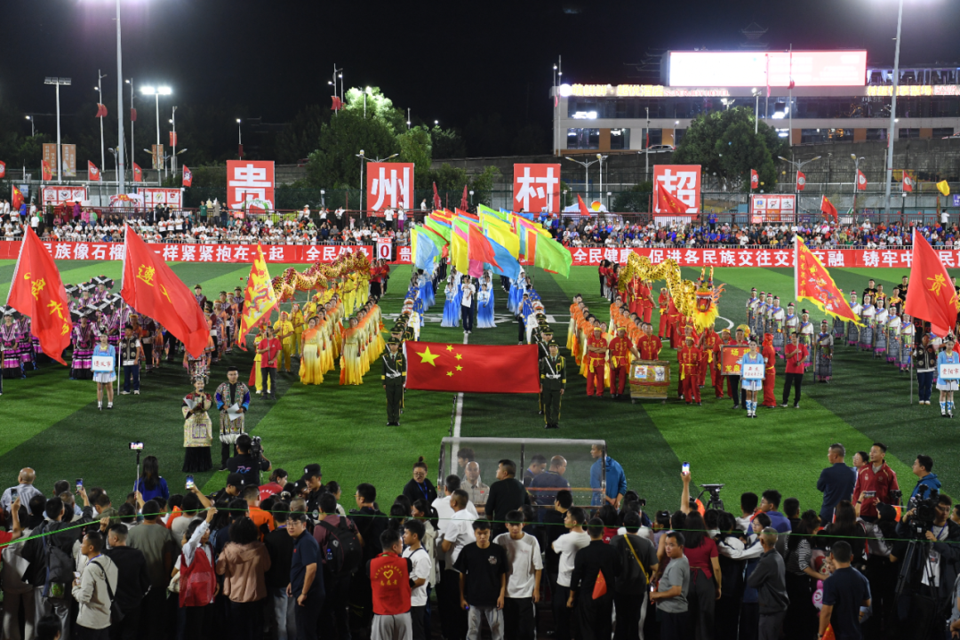 当晚,贵阳市、遵义市、六盘水市、安顺市、毕节市、铜仁市、黔东南州、黔南州、黔西南州同步开启乡村足球狂欢。县县村超大舞台载歌载舞,秀出多彩贵州文化之美、乡村振兴蓬勃朝气、乡村体育独特魅力,汇聚成各族群众共庆、共乐、共享的温暖画卷。