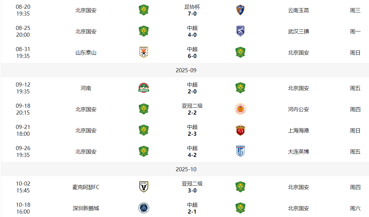 在足协杯赛场,北京国安同样高歌猛进,7-0狂胜云南玉昆闯进决赛,一度让球迷看到了争夺双冠王的希望。然而,中超第23轮,北京国安在客场0-6惨败给山东泰山,这场失利成为了国安走下坡路的转折点。接连不敌河南、上海海港后,国安的排名降至第4,争冠形势一片黯淡。