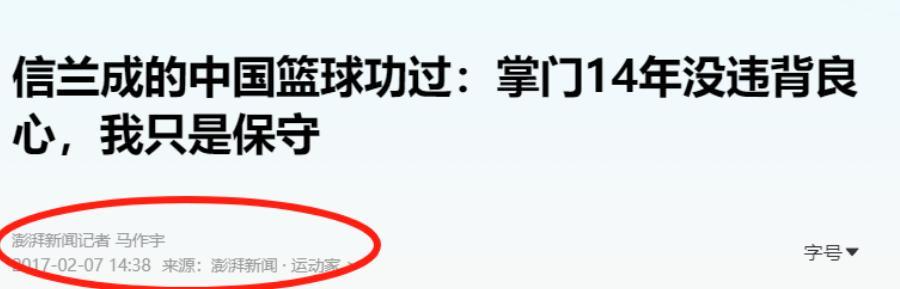 《李元伟:男篮孱弱因领导失职,信兰成居然能干14年》澎湃新闻2017-02-07
