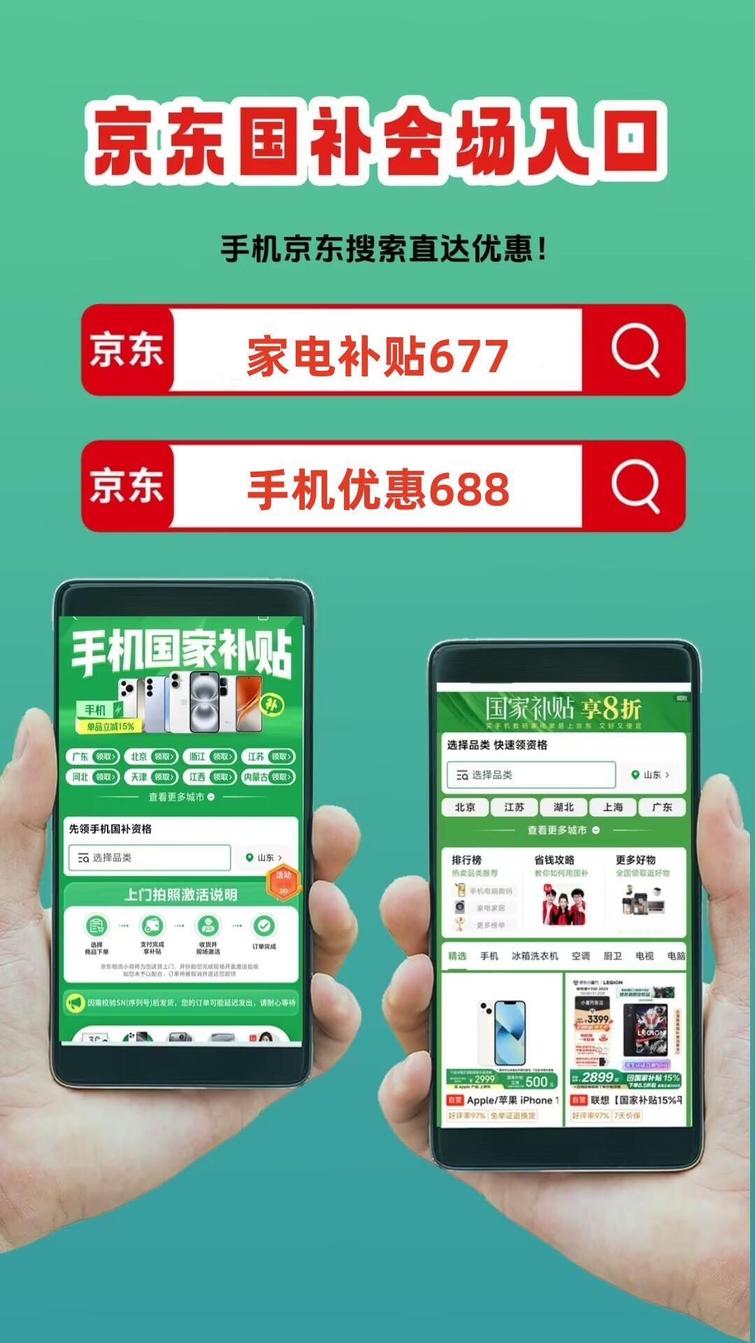 数码/手机国补入口:京东APP搜索“手机优惠688”,进入专区挑选产品。补贴最高999元,针对手机、笔记本、平板等。