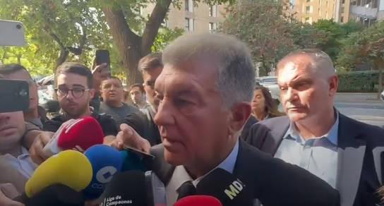 北京时间明日凌晨00:45,巴塞罗那足球俱乐部将迎来欧冠联赛阶段第三轮的主场对决,对手是奥林匹亚科斯。赛前,巴萨主席拉波尔塔在抵达蒙特惠奇体育场后,接受了媒体的采访,就近期一系列热点问题发表了看法。