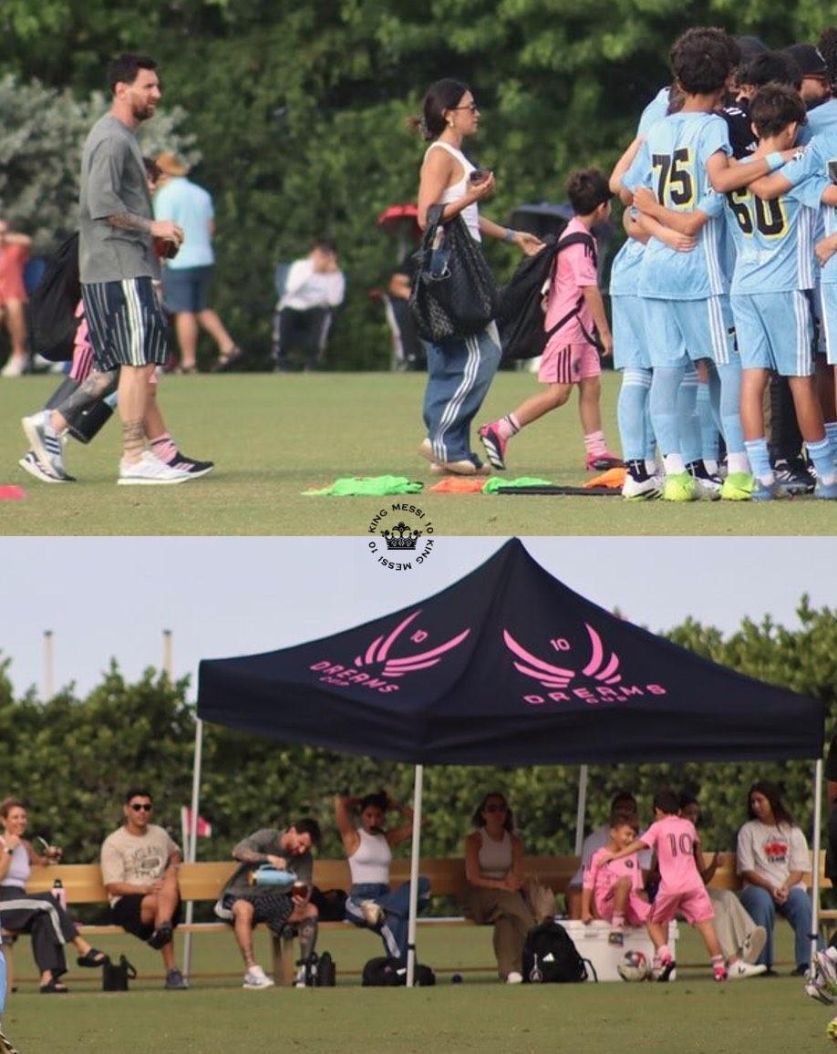 在赛场边,梅西展现出了他作为父亲和球迷的双重身份。照片中,他悠闲地坐在场边的遮阳棚内,手中捧着一杯马黛茶,一边品味着茶香,一边专注地观看儿子的比赛。这份从容与惬意,让人不禁感受到梅西在赛场外作为普通人的温馨一面。