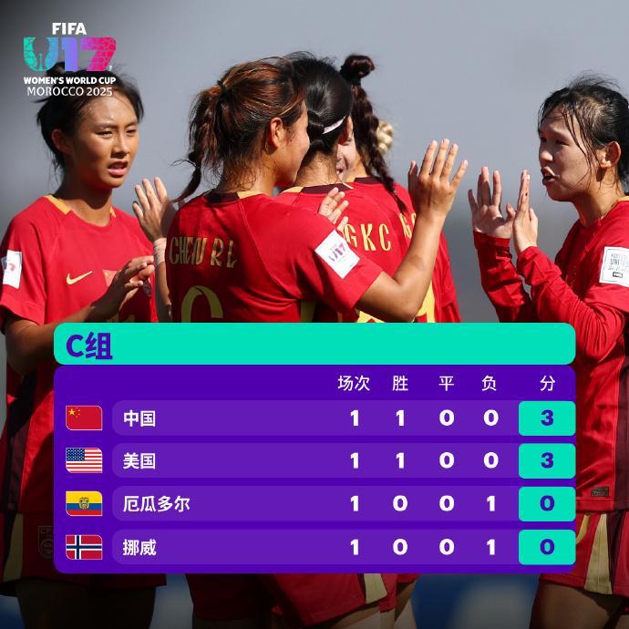 在首轮比赛中,中国U17女足展现强劲实力,以5-0的比分横扫欧洲亚军挪威队,周欣怡、方珍珠双双梅开二度,陈睿琳贡献传射,全队进攻火力全开。而美国队同样以3-0完胜厄瓜多尔,两队目前同积3分,中国队凭借净胜球优势暂列小组第一。