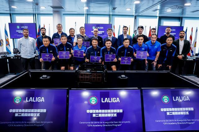 近日,由中国足协与西甲联盟联合打造的首期青训总监培训项目在西班牙圆满落幕。来自全国各地的12位足球青训精英,在西甲联盟的盛情邀请下,齐聚西班牙,进行了为期近三周的深度培训。期间,他们实地探访了马竞、奥萨苏纳、比利亚雷亚尔、瓦伦西亚等多家西甲俱乐部的青训营,亲身领略了西班牙足球青训体系的先进与成熟。